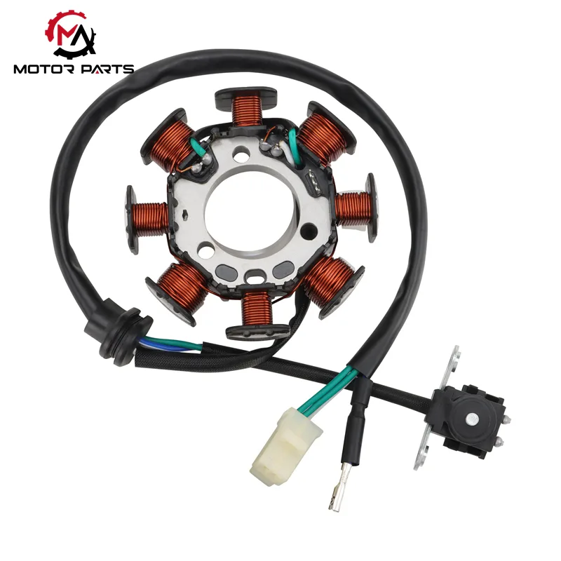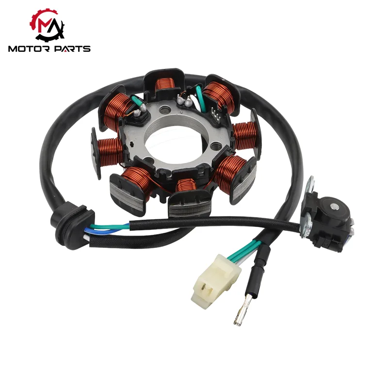CRF150F मोटरसाइकल म्याग्नेटो कोइलको सञ्चालन फाराडेको इलेक्ट्रोम्याग्नेटिक इन्डक्शनको नियममा आधारित छ। जब इन्जिन चल्छ, क्र्याङ्कशाफ्टले रोटर चुम्बकलाई उच्च गतिमा घुमाउन चलाउँछ, गतिशील वैकल्पिक चुम्बकीय क्षेत्र बनाउँछ। स्टेटर कोइल समूहले वैकल्पिक करन्ट उत्पन्न गर्न चुम्बकीय क्षेत्र रेखाहरू काट्छ, जुन त्यसपछि मोटरसाइकलको विद्युतीय घटकहरूको समन्वयित कार्यलाई महसुस गर्न इग्निशन, चार्जिङ र समय प्रणालीहरूमा वितरण गरिन्छ।