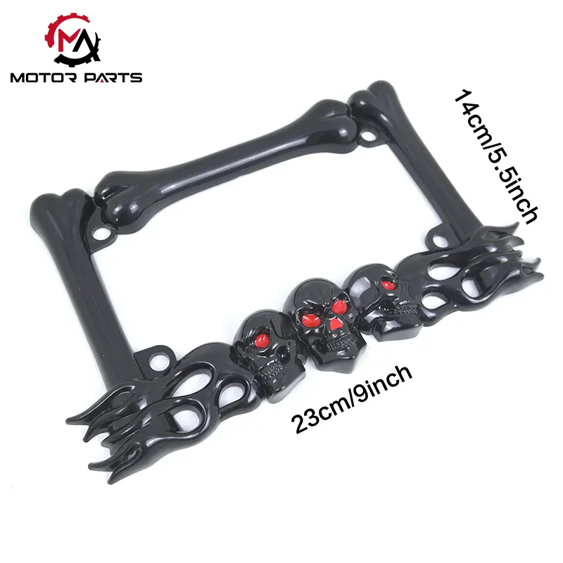 अभिनव डिजाइनले जीवनजस्तै खोपडीको आकारहरू सिर्जना गर्न उच्च राहत प्रविधिको प्रयोग गर्दछ, चलाखीपूर्वक कालो तत्वहरू जस्तै क्रसबोनहरू, डगरहरू, र ज्वालाहरूलाई एकीकृत गर्दै, खोपडीको अनुहारको दाँतको तीखोपन र आँखाका सकेटहरूको गहिराइ प्रदर्शन गर्दै, उच्च गतिशील स्टेरियोस्कोपिक प्रभाव ल्याउँछ। Etsy प्लेटफर्मको अनुकूलित उत्पादनहरूलाई उदाहरणको रूपमा लिँदै, स्वारोवस्की क्रिस्टलहरू खोपडीको आँखामा सावधानीपूर्वक इम्बेड गरिएका छन्, जसले 27 चकित रङ विकल्पहरू प्रदान गर्दछ जसले अद्वितीय व्यक्तित्व मात्र प्रदर्शन गर्दैन, तर US मानक ABS मोटरसाइकल लाइसेन्स प्लेट फ्रेमलाई एक आश्चर्यजनक दृश्य प्रभाव पनि दिन्छ।